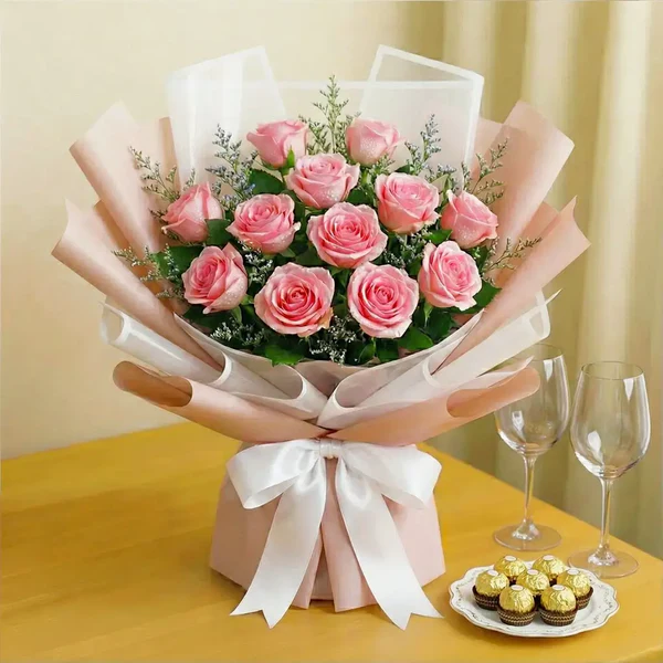 Send some love with these plush pink roses, gorgeously styled and hand tied for elegance. For a birthday, or just because? Who wouldn’t adore this classy bouquet?!